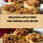 These Apple Crisp Mini Cheesecakes combine creamy cheesecake with warm cinnamon apples and a crunchy oat crumble topping. Perfect for individual servings, they make a delightful dessert for any occasion.