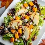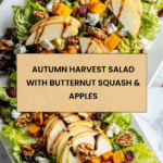 Keywords: Autumn Harvest Salad, butternut squash salad, fall salad recipe, mixed greens salad, healthy fall recipes, vegetarian autumn salad