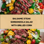 This Balsamic Steak Gorgonzola Salad with Grilled Corn combines juicy sirloin steak marinated in a tangy balsamic mixture with smoky grilled corn, crisp mixed greens, and creamy Gorgonzola cheese. The fresh herb gremolata and zesty balsamic vinaigrette add vibrant flavors, making it a perfect hearty and elegant salad for any meal.