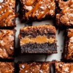 • Make sure the cookie butter layer is fully frozen before adding the batter to prevent mixing flavors and to achieve a clear, distinct layer inside the brownies.