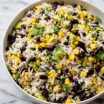 - Step 4: In a large salad bowl, combine the cooled rice, avocado, black beans, corn, red onion, and cilantro. Pour the dressing over the salad and toss gently to combine.