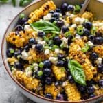 A vibrant and refreshing Blueberry Corn Feta Salad combining sweet fresh corn and blueberries with spicy jalapeño, creamy feta, and a zesty lime dressing, perfect as a light side dish or summer appetizer.
