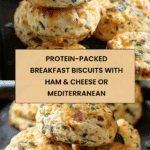 Keywords: Protein biscuits, breakfast biscuits, Greek yogurt biscuits, savory biscuits, ham and cheese biscuits, Mediterranean sausage biscuits