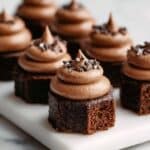 Keywords: brownie petit fours, chocolate petit fours, chocolate ganache, bite-sized brownies, chocolate dessert, party desserts