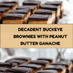 Decadent Buckeye Brownies feature a rich, fudgy brownie base topped with a creamy peanut butter layer and finished with a smooth chocolate ganache. This delightful treat combines classic flavors of chocolate and peanut butter in one irresistible dessert, perfect for any occasion or peanut butter lover.