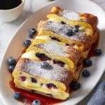 6. Serve: Transfer the Cannoli French Toast to a plate. Dust with powdered sugar, add fresh berries on top if desired, and drizzle with maple syrup for a sweet, fruity finish.