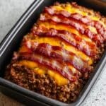 Keywords: Cheeseburger Meatloaf, Meatloaf with Cheese and Bacon, Comfort Food, Easy Meatloaf Recipe, Baked Meatloaf