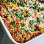 This Chicken Burrito Casserole is a flavorful, one-dish meal combining shredded chicken, rice, black beans, vegetables, and a blend of spices baked to perfection and topped with melted cheese. It’s a comforting, protein-packed casserole perfect for weeknight dinners with Mexican-inspired flavors.