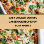 This Chicken Burrito Casserole is a comforting, flavorful dish that combines tender shredded chicken with seasoned rice, black beans, and melted cheese. It’s an easy one-pan meal perfect for busy weeknights or casual gatherings. Enjoy all the classic burrito flavors in a warm, cheesy casserole.