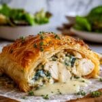 - Bake: Preheat the oven to 400°F (200°C). Place the pastry-wrapped chicken on a baking tray and bake for 25–30 minutes or until the pastry is golden brown and cooked through.