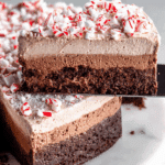 This Chocolate Peppermint Mousse Pie combines a rich hazelnut chocolate crust with a smooth and creamy peppermint-infused chocolate hazelnut mousse. Topped with crushed candy canes and powdered sugar, this festive dessert is perfect for holiday gatherings or any special occasion.
