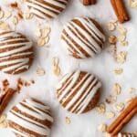 Keywords: cinnamon roll energy bites, no-bake energy bites, almond butter snacks, protein snacks, healthy energy bites, white chocolate drizzle, gluten free snack