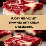 These Classic Red Velvet Brownies with a Creamy Cheesecake Layer combine rich, fudgy brownie texture with the tangy smoothness of cheesecake. The striking marbled effect and deep red color make them a stunning treat perfect for any occasion.