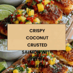 Coconut Crusted Salmon with Pineapple Salsa is a vibrant and flavorful dish featuring tender salmon fillets coated in a crunchy coconut and panko breadcrumb crust. Paired with a fresh, zesty pineapple salsa, this recipe balances savory and sweet notes perfectly. Ideal for a healthy weeknight dinner or a special occasion, the salmon can be either baked for a hands-off approach or pan-fried for a crispier crust.