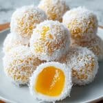 Coconut Mango Bliss Balls are a delightful, chewy treat combining the tropical flavors of coconut and fresh mango. Made with glutinous rice flour and coconut milk, these sweet, steamed balls are filled with frozen mango puree and coated in shredded desiccated coconut for a refreshing and naturally sweet snack perfect for a light dessert or a healthy indulgence.