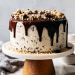 - Finish Frosting: Stir mini chocolate chips into remaining buttercream, then frost the outside of the cake evenly. Refrigerate cake while preparing ganache.
