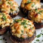 Crab Stuffed Mushrooms are a savory and elegant appetizer featuring large mushroom caps filled with a creamy, flavorful mixture of crab meat, cream cheese, Parmesan, and seasonings. These bite-sized delights are baked to perfection, offering a golden, slightly crispy topping over tender mushrooms, making them perfect for parties, gatherings, or a special treat.