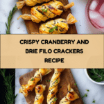 These Cranberry and Brie Filo Crackers combine flaky pastry, creamy brie, and sweet-tart cranberry sauce for a delightful appetizer. Perfect for parties or a cozy snack, they offer a wonderful mix of textures and flavors in every bite.