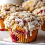 Cranberry Orange Muffins bring together the bright, tart flavor of cranberries with the sweet zest of fresh orange peel. These moist, tender muffins are topped with a crunchy pecan streusel and finished with a glossy orange glaze—perfect for breakfast or a delightful snack.
