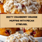 These Cranberry Orange Muffins blend tart cranberries with bright orange zest and juice, topped with a crunchy pecan streusel and a sweet orange glaze. Perfectly moist and flavorful, they make a delightful breakfast or snack for the holiday season and beyond.