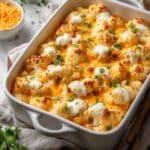 This Creamy Buffalo Chicken Cauliflower Casserole is a spicy, cheesy, and satisfying dish perfect for lovers of bold flavors and low-carb alternatives. Tender cauliflower florets are combined with shredded chicken, tangy buffalo sauce, and creamy ranch dressing, then topped with melted cheddar and mozzarella cheese for a hearty casserole that’s deliciously comforting and simple to make.