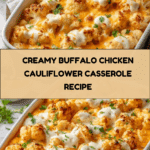 This Creamy Buffalo Chicken Cauliflower Casserole is a deliciously spicy and cheesy dish that combines tender cauliflower with shredded chicken in a bold buffalo sauce. It’s perfect for a comforting weeknight dinner or a crowd-pleasing appetizer.