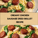 This creamy chicken sausage orzo is a comforting one-pan meal combining tender orzo pasta, flavorful chicken sausage, and a rich creamy sauce. Enhanced with garlic, herbs, and optional greens or sun-dried tomatoes for extra texture and brightness, it’s an easy skillet dish perfect for weeknight dinners.