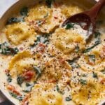 - Add Ravioli and Tomatoes: Stir in the ravioli and sun-dried tomatoes. Simmer for 5–6 minutes (or according to the package instructions), until the ravioli is cooked through and tender.