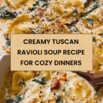 This Creamy Tuscan Ravioli Soup is a hearty and flavorful Italian-inspired dish featuring tender cheese ravioli, savory Italian sausage, sun-dried tomatoes, and fresh spinach all simmered in a creamy, seasoned broth. Perfect as a comforting and satisfying meal, it combines rich flavors with simple ingredients for a delicious weeknight dinner.