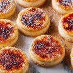 - Caramelize Sugar: Just before serving, use a kitchen torch to caramelize the granulated sugar on top of each cookie until golden and crisp. Allow the caramelized sugar to cool and harden before serving.