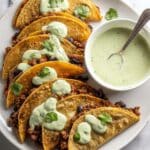 Store leftover taco filling and avocado sauce separately in airtight containers in the refrigerator for up to 3 days. Reheat the filling gently in a skillet over medium heat until warmed through. Reheat assembled tacos in the oven at 350°F for 5-7 minutes to maintain crispiness. The avocado sauce is best served fresh but can be stirred before serving if stored.