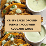 These crispy baked ground turkey tacos are a flavorful twist on a classic favorite. Packed with seasoned turkey, black beans, and melty cheese, they’re baked to crispy perfection and served with a creamy avocado sauce. Perfect for a satisfying weeknight dinner or casual gathering.