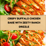 This Crispy Buffalo Chicken recipe features tender chicken breasts coated in a flavorful blend of flour, ranch dressing, buffalo sauce, and crunchy panko breadcrumbs, then baked to golden perfection. Topped with melted cheese and drizzled with a zesty buffalo ranch sauce, it’s an easy and delicious meal that’s perfect for game day or a weeknight dinner.