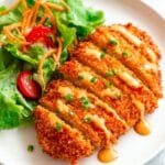 This Crispy Buffalo Chicken recipe features tender chicken breasts coated in a flavorful blend of flour, ranch dressing, buffalo sauce, and crunchy panko breadcrumbs, then baked to golden perfection. Topped with melted cheese and drizzled with a zesty buffalo ranch sauce, it’s an easy and delicious meal that’s perfect for game day or a weeknight dinner.