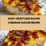 A simple and delicious crustless quiche made with eggs, cheddar cheese, and bacon, perfect for a quick breakfast or brunch. This easy-to-make dish is creamy, savory, and packed with protein, baked to golden perfection without the need for a crust.