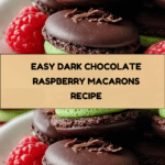 Dark Chocolate Raspberry Macarons are delicate French cookies with a crisp shell and chewy center, filled with rich chocolate ganache and a burst of raspberry jam. Perfect for special occasions or a refined treat, these macarons combine tart fruitiness with deep chocolate flavor.