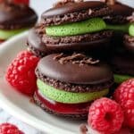 Dark Chocolate Raspberry Macarons are delicate French cookies with a crisp shell and chewy center, filled with rich chocolate ganache and a burst of raspberry jam. Perfect for special occasions or a refined treat, these macarons combine tart fruitiness with deep chocolate flavor.