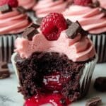 These Decadent Raspberry Chocolate Lava Cupcakes are a chocolate lover’s dream with a molten raspberry center that surprises with every bite. Topped with a luscious raspberry buttercream and fresh raspberries, they’re perfect for any special occasion or a delightful treat.