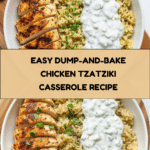 This Dump-and-Bake Chicken Tzatziki Casserole is a simple, flavorful one-dish meal that combines tender chicken with fresh vegetables and creamy tzatziki sauce. Perfect for busy weeknights, it requires minimal prep and delivers Mediterranean-inspired comfort in every bite.
