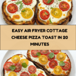 This Easy Air Fryer Cottage Cheese Pizza Toast is a quick, delicious snack or light meal featuring crispy bread topped with creamy cottage cheese, melted mozzarella, and colorful veggies. Perfectly cooked in the air fryer for a golden, crunchy finish, this recipe is versatile, healthy, and ready in just 20 minutes.