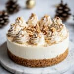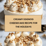 This Eggnog Cheesecake is a festive twist on a classic dessert, perfect for the holiday season. Creamy, spiced, and topped with whipped cream, it combines the rich flavors of eggnog with a buttery graham cracker crust.