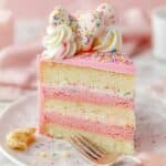 - Frost Cake: Apply the white chocolate buttercream evenly to the outside of the cake. Use sprinkles around the sides to decorate.