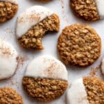 These Gingerbread Latte Cookies combine warm spices and rich espresso notes with chewy oats and sweet molasses. Finished with a creamy white chocolate dip dusted with cinnamon and nutmeg, they are a perfect treat for cozy afternoons or holiday gatherings.