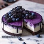 This Gothic Blueberry Cheesecake combines a creamy, classic cheesecake base with a dramatic dark blueberry topping for a stunning dessert. Perfect for impressing guests or enjoying a special treat, its rich flavors and eye-catching look make it truly unforgettable.