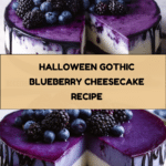 This Gothic Blueberry Cheesecake combines a classic creamy cheesecake with a dramatic dark blueberry topping for a visually stunning and delicious dessert. Featuring a buttery graham cracker crust, smooth cream cheese filling, and a bold blueberry glaze tinted with black food coloring, it’s perfect for special occasions or whenever you want to impress guests with a unique and flavorful treat.
