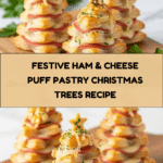 These Ham & Cheese Puff Pastry Christmas Trees are festive, fun, and perfect for holiday gatherings. Crispy puff pastry layers blanket savory ham and melted cheese, shaped into charming little trees that will impress your guests and delight your taste buds.