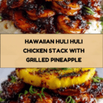 Hawaiian Huli Huli Chicken Stack is a flavorful and visually stunning dish that combines tender grilled chicken with sweet, caramelized pineapple. Layered over fluffy white rice and drizzled with a glossy teriyaki glaze, it’s a perfect tropical-inspired meal for any night of the week.