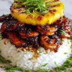 Hawaiian Huli Huli Chicken Stack is a flavorful and visually stunning dish that combines tender grilled chicken with sweet, caramelized pineapple. Layered over fluffy white rice and drizzled with a glossy teriyaki glaze, it’s a perfect tropical-inspired meal for any night of the week.