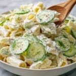 Keywords: healthy pasta salad, cucumber pasta salad, creamy dill dressing, easy summer salad, vegetarian pasta salad
