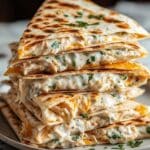 Keywords: chicken quesadilla, high-protein quesadilla, ranch dressing recipe, quick chicken dinner, cheesy quesadilla